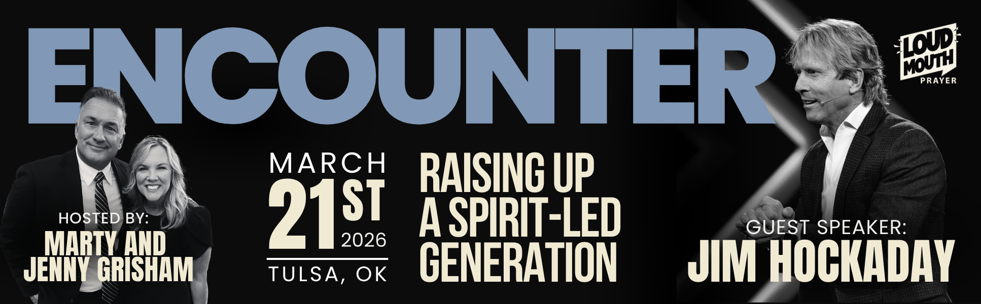 Loudmouth Prayer invites you to our next powerful gathering in the Encounter series — a Holy Spirit prayer conference dedicated to equipping, igniting, and strengthening believers for a life of bold faith and daily fellowship with God.