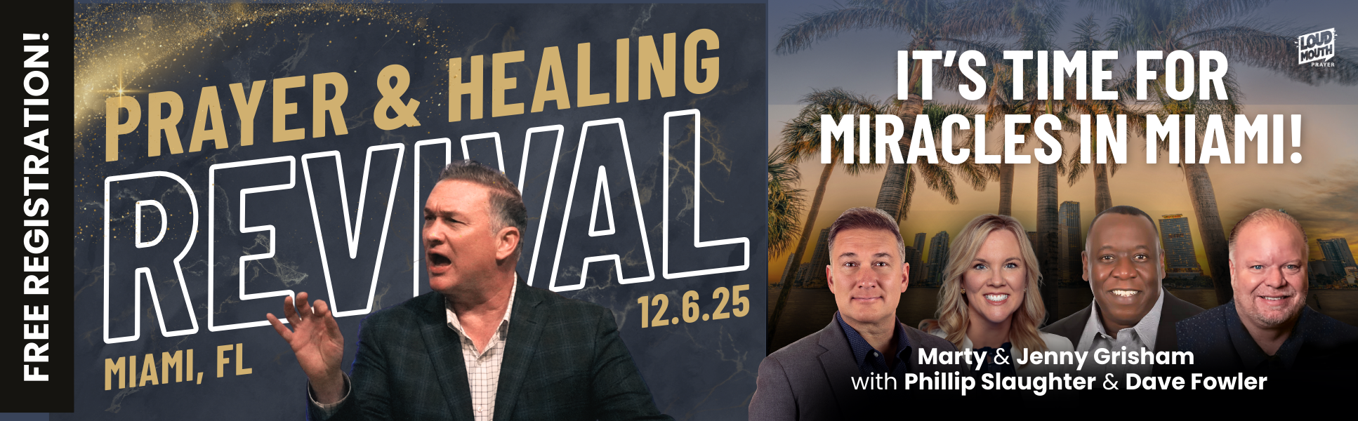 Across America, believers are uniting in prayer and witnessing an outpouring of miracles—and now Miami is next. Whether you long for deeper fellowship with God, desire to lift up this nation in prayer, or need His healing power in your body, come expecting miracles!